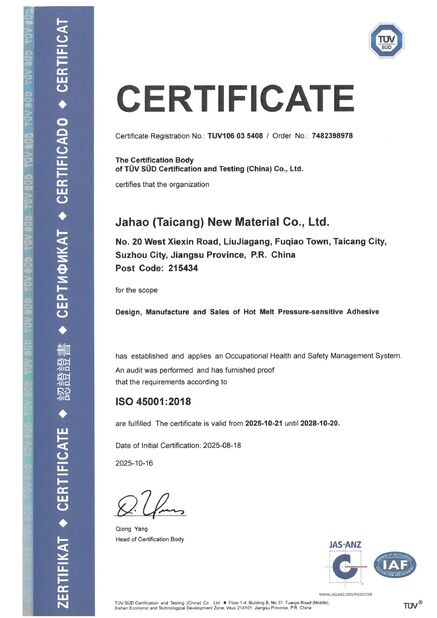 La norme:ISO 45001: 2015 Nombre:TUV100 03 5408 Date de sortie:2025-10-21 Date de péremption:2028-10-20
