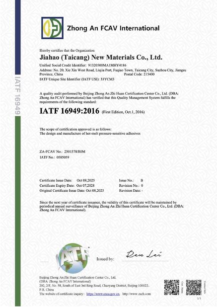 La norme:IATF 16949:2016 Nombre:0585059 Date de sortie:2025-10-08 Date de péremption:2028-10-07